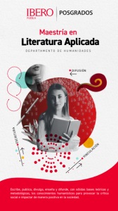 Este programa forma profesionales de la escritura creativa y divulgativa de la literatura de diversos géneros narrativos y ensayísticos. La persona especialista en Literatura Aplicada escribe, publica, divulga, enseña y difunde, con sólidas bases teóricas y metodológicas, los conocimientos humanísticos para provocar la crítica social e impactar de manera positiva en la sociedad. DEPARTAMENTO DE HUMANIDADES Maestría en Literatura Aplicada ESCRITURA VINCULACIÓN DIFUSIÓN Escribe, publica, divulga, enseña y difunde, con sólidas bases teóricas y metodológicas, los conocimientos humanísticos para provocar la crítica social e impactar de manera positiva en la sociedad. VINCULACIÓN